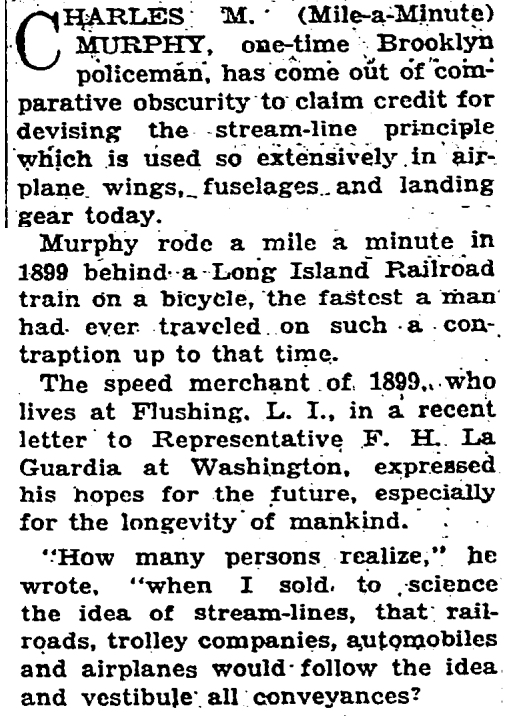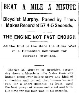 The 147mph marked a new Woman's Paced Bicycle Land Speed Record, a style of extreme speed that dates back to 1899 when Charles "Mile-a-Minute" Murphy drafted a train on a bike, with sheets of plywood laid down between the rails the tracks for a riding surface. Murphy completed a mile in 57.8 seconds, according to newspapers at the time.