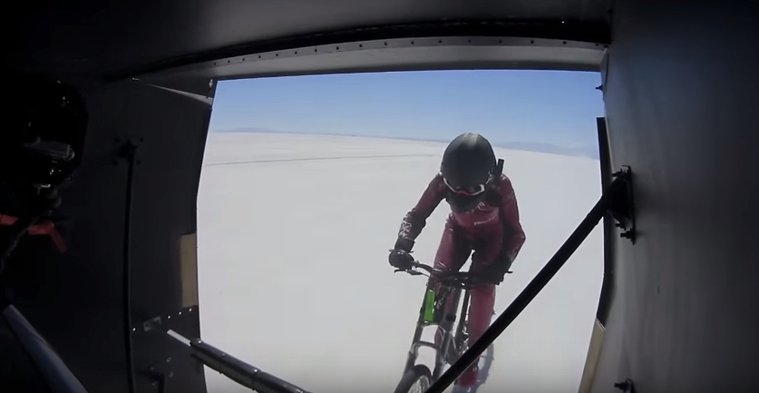California cyclist Denise Mueller set a women’s world speed record of 147mph Saturday, drafting an SUV on a wildly unique, fixed-gear bicycle on the Bonneville Salt Flats of Utah in the United States.