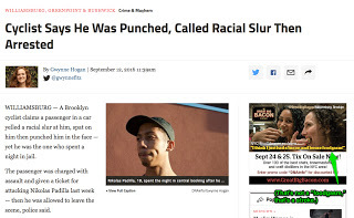 As for Old Man Murphy, he was a Brooklyn cop, and today his fellow officers honor his memory by arresting cyclists after they're assaulted by racists: