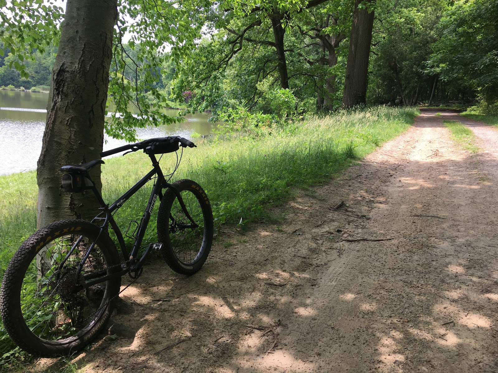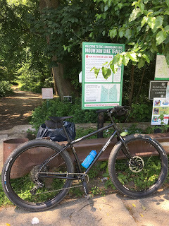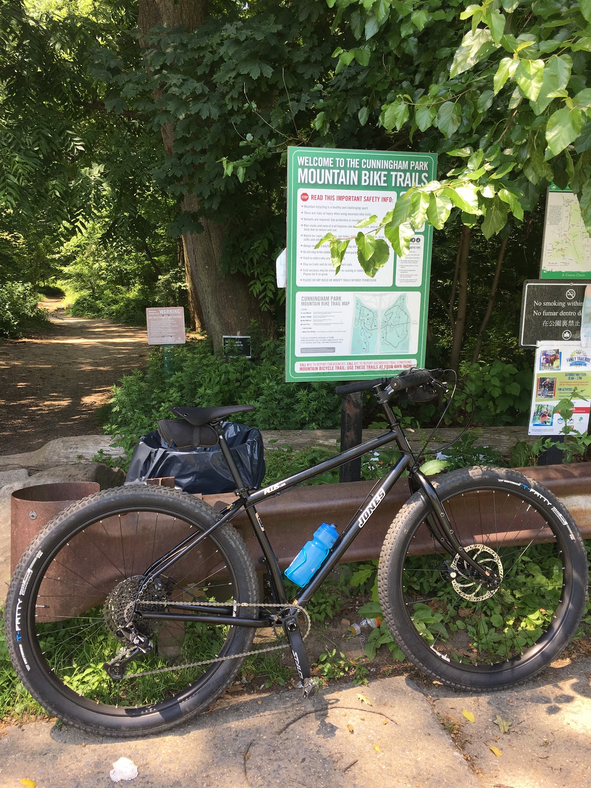 Anyway, Queens is a brilliant patchwork of cultures, and undoubtedly one of the most interesting places in the United States if not the entire world. At the same time...well, let's just say it's not exactly the first place you'd choose for a long ride. I mention this because a trans-Queens ride on a hot day (on a bike with 3-inch wide knobby tires no less) has all the makings of a slog, but in this case it didn't feel like a slog at all, and I credit the Jones for this. This is largely due to the comfortable upright position and the multiple hand positions afforded by the bars, but I also wonder if maybe the bigger wheels and longer wheelbase made it feel a bit more "cruisy" and gave it better road manners. Granted, it could have just been new bike excitement, but either way I arrived at Cunningham feeling much fresher than I should have given the high temperatures and the roughly 450,000 traffic lights between the start of my ride and the trailhead: