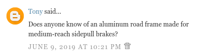 But now that titanium has entered my life I have decided that it's time for the Ritte to embark upon the next chapter, and so I sent it off to its new home via Bike Flights, which I've had occasion to use twice now, and for which I'll offer an unsolicited plug since I've been very pleased with them. In fact this time I used their cardboard box, which was very easy to assemble and pack, and I'm assuming the bike arrived in good condition since I haven't heard otherwise from the recipient.