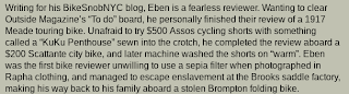 Firstly, I've got a new Outside column, and it's all about how I've become one of those sniveling sidewalk cyclists: