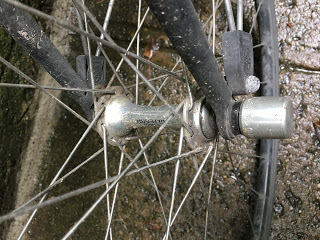 Of course, when putting the Milwaukee in its new position I had to explain to it that this was in no way a demotion. Indeed, this is a role that requires strength and fortitude, and in many ways entrusting a bicycle to it is the ultimate vote of confidence. Predictably, the Milwaukee, then replied, "Oh yeah? Then where's my raise?" I then explained that there would be no raise, but I would equip it with these theft-proof skewers so at least its wheels wouldn't get stolen: