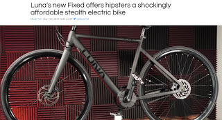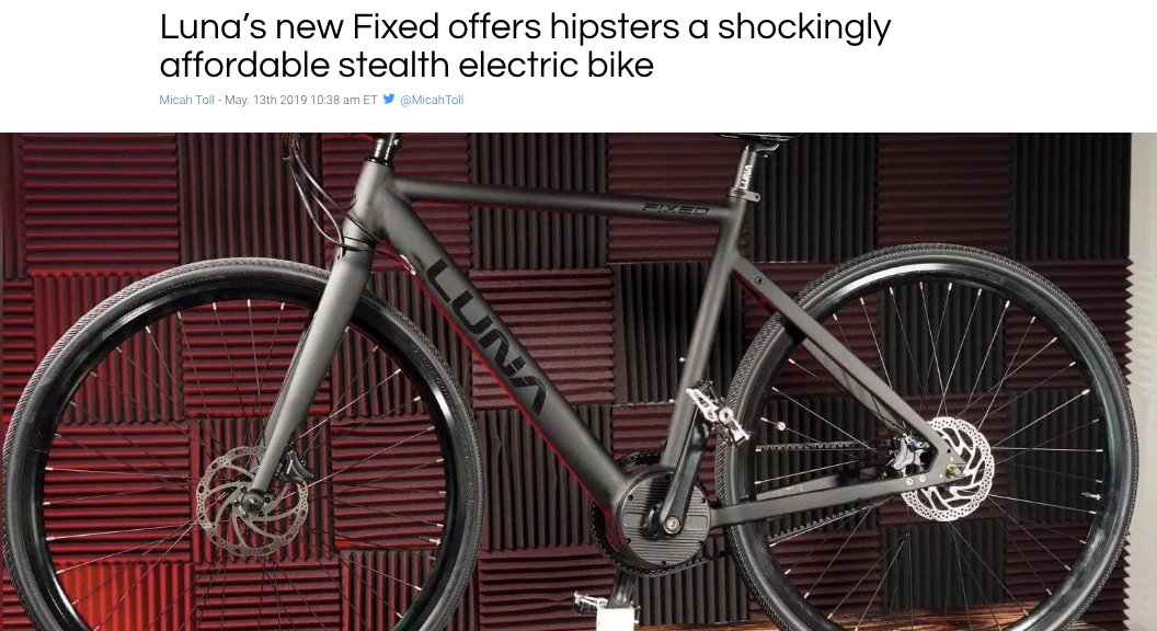 The Luna Fixed is a fixed gear styled electric bike. For the uninitiated, fixed gear bikes are generally minimalist frames lacking cable clutter and have their pedal input rigidly connected to the rear wheel without a freewheel, meaning if the bike is moving then the pedals are moving too.