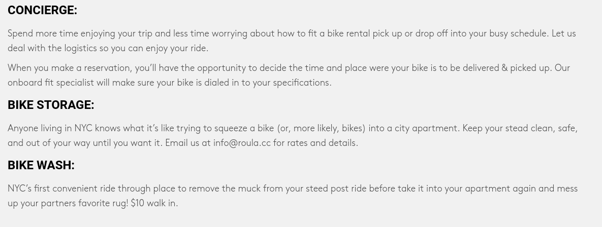 Roula, as it turns out, is a company that leads rides and rents high-end Fred Sleds, among other services--and yes, you can also give your bike a sponge bath: