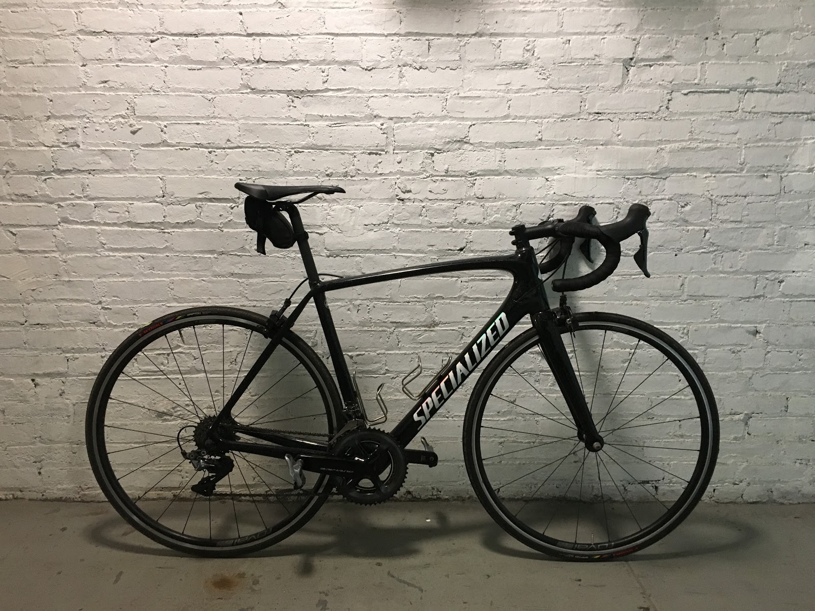 Nevertheless, both bikes have tires of similar width, and both tires just happen to be from Specialized, though the plastic bike has Turbo something-or-other and the titanium bike has Roubaix something-or-other. And, aesthetic considerations aside, the two bikes are actually pretty similar in terms of size and geometry.