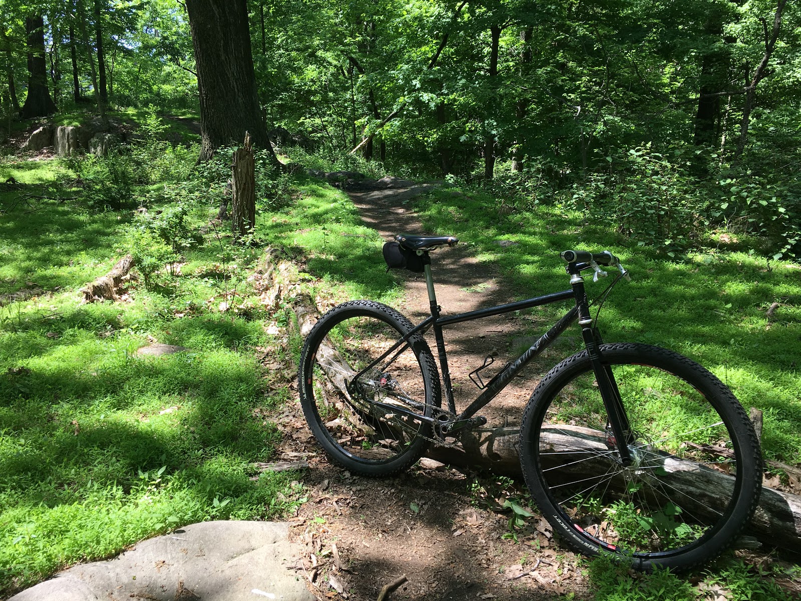 After a long stretch of cold and rain the sun has finally returned and brung some warmth with it. This meant that it was time to end my lengthy titanium Fredding streak and pivot back to the dirt. And so this morning I donned my best jorts and headed out into the wilds of suburbia.