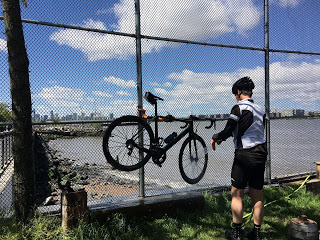 Not only that, but this morning I ended up cutting a swath through Manhattan yet again, for I headed out early to take a bucolic ride on so-called "River Road" in New Jersey, only to find it closed: