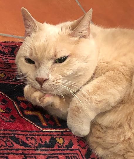I have this nightmare of all our furniture sitting in 4 inches of cat litter because we can’t solve the problem. One vet said, “Get rid of the carpets.” Are you kidding? I bought most of them from local artisans in Afghanistan and Pakistan. No. Okay, so we put away the main targeted carpet. Butterfly pees on the floor.
