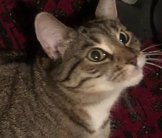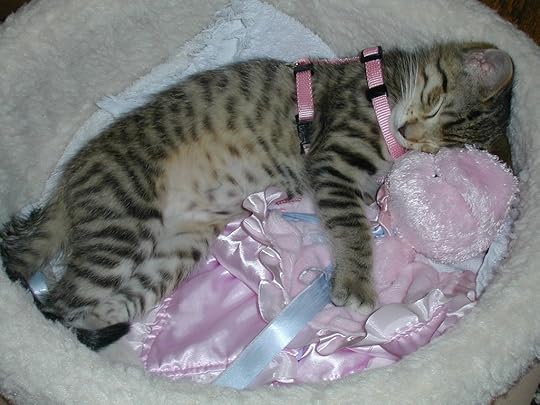 From Butterfly’s point of view this has to be not only grossly unfair–after all, we should all have our privacy respected–but she was here first. Here she is as the adorable little bit of gray fluff all huddled up next to a toy in her own warm bed. She was right at the center of attention where every cat belongs, right?