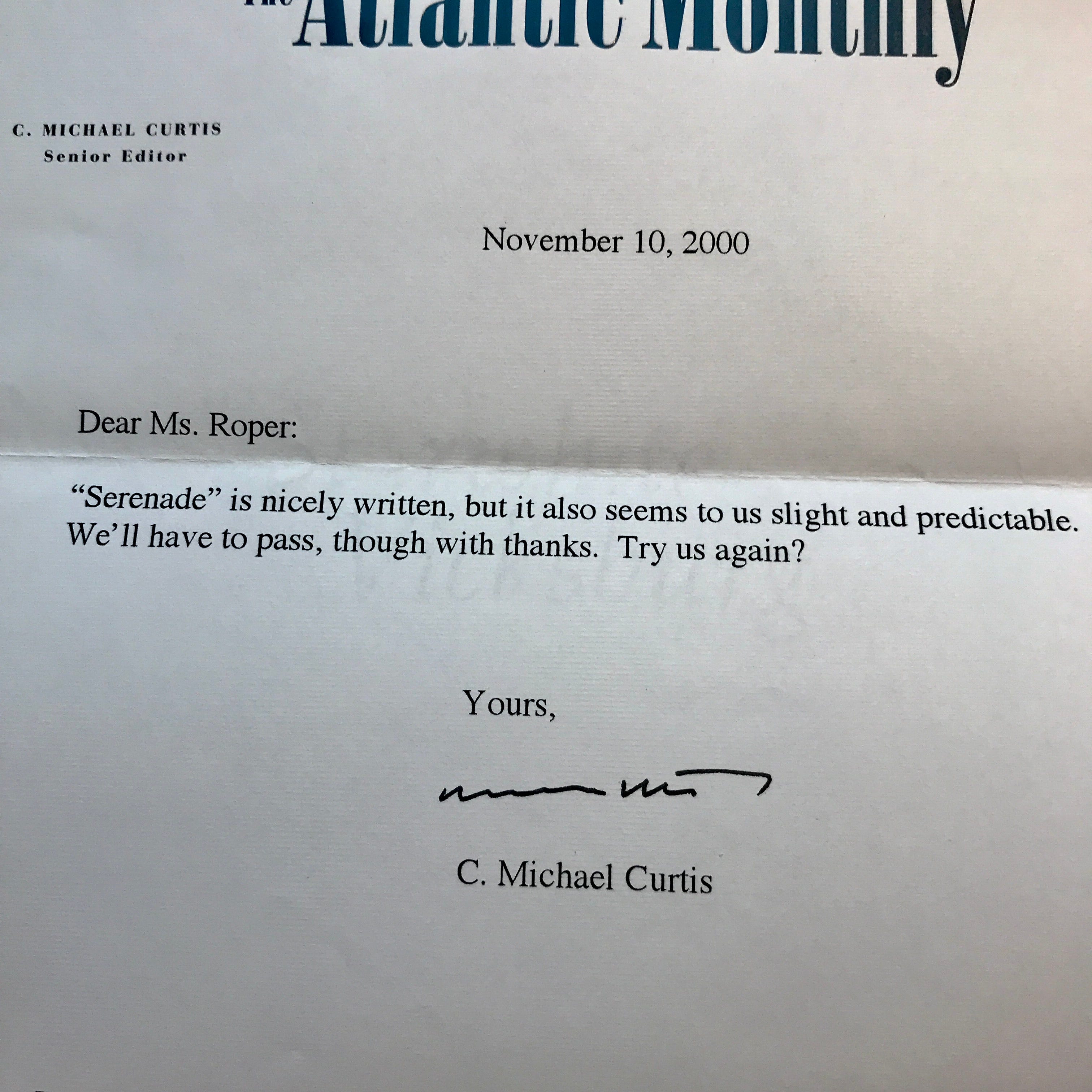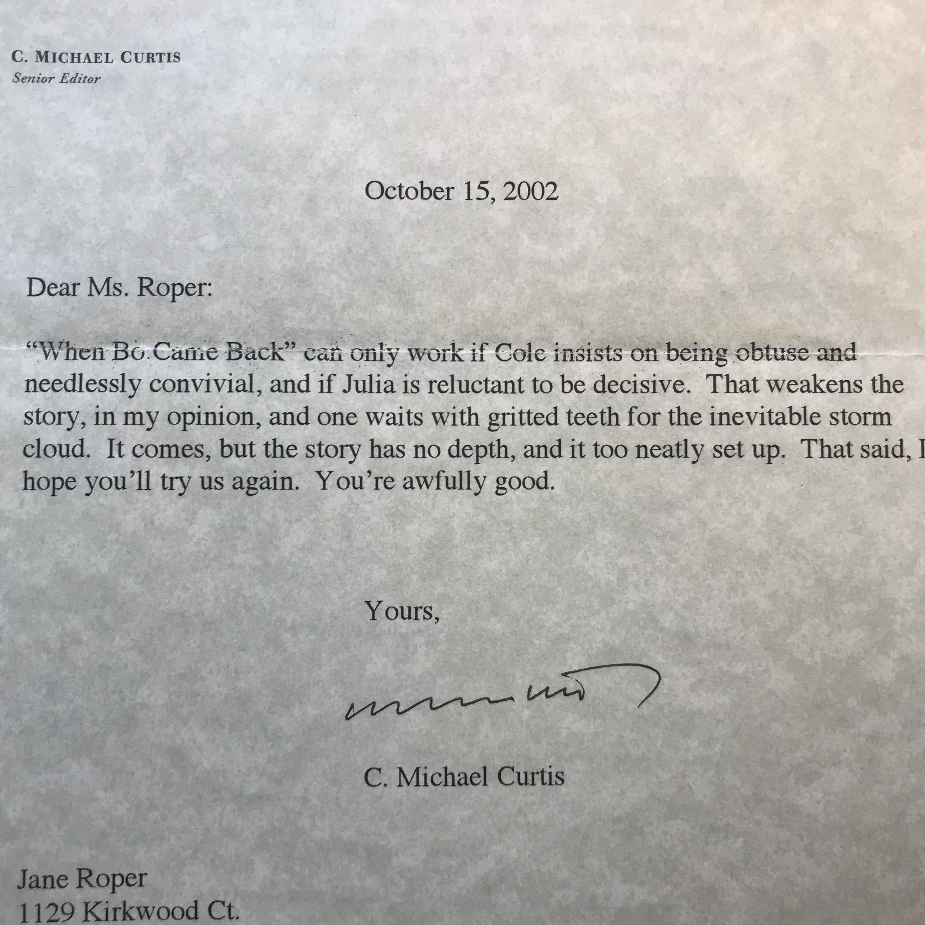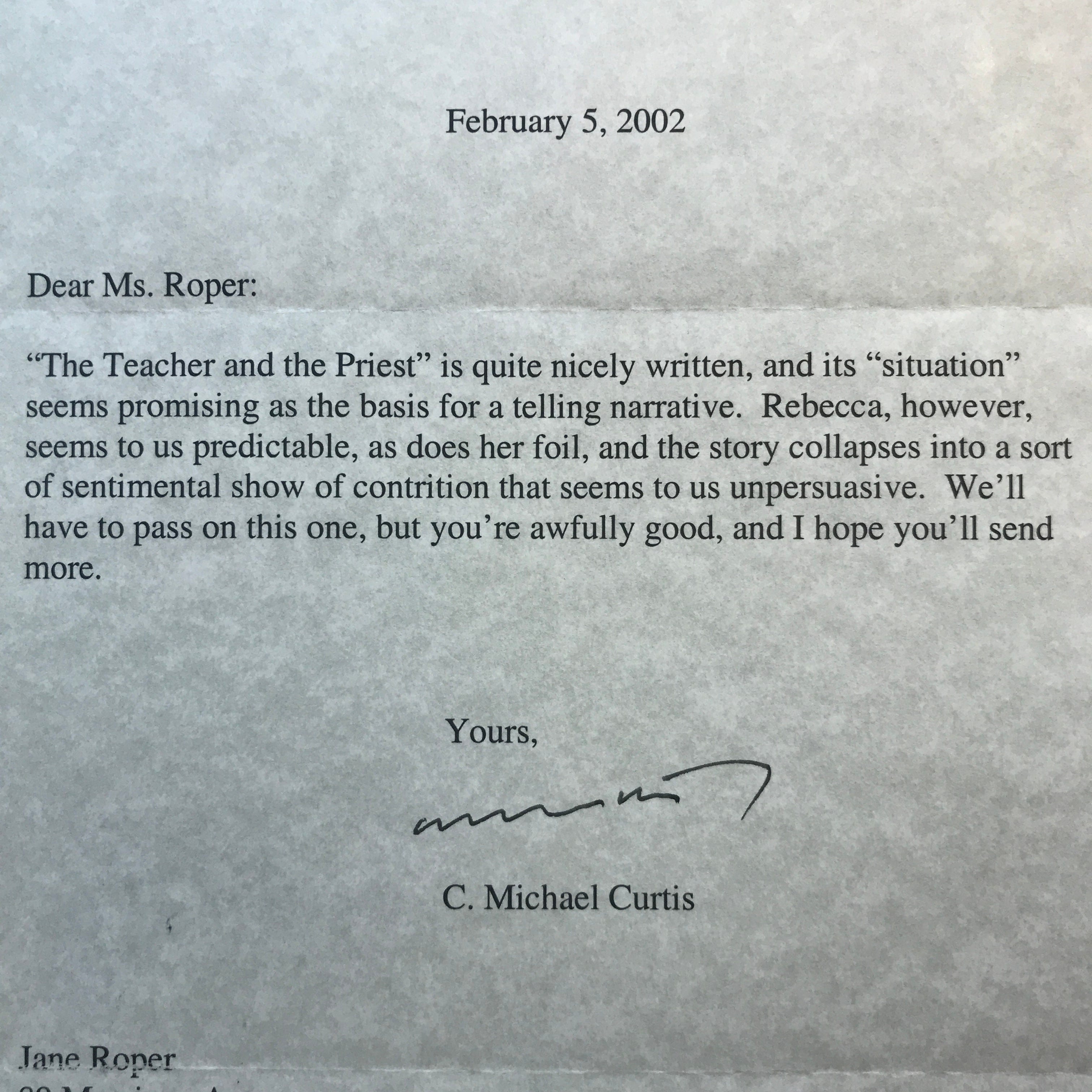 Do I want to keep the rejection notes I received during the brief few years that I submitted short stories to literary magazines? Yeah, definitely. Not just because they’re quaint (printed rejection notes, sent to me in self-addressed stamped envelopes!) but because they are a reminder of those heady, hopeful days when I first fell in love with this thing called writing. Some of them had words of encouragement, which I desperately clung to.