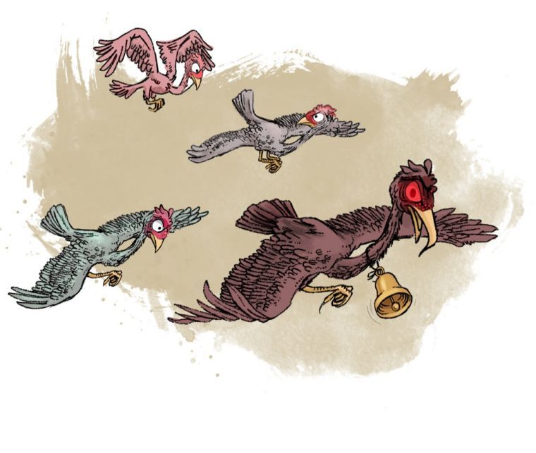 Jerome Clark devotes a chapter of his book Unexplained!: Strange Sightings, Incredible Occurrences, and Puzzling Physical Phenomena (Visible Ink, 2013; 3rd ed.) to the legend of “the belled buzzard”: a buzzard with a bell hung around its neck, which rang, as if in warning, as the bird flew overhead (pp. 233-242).