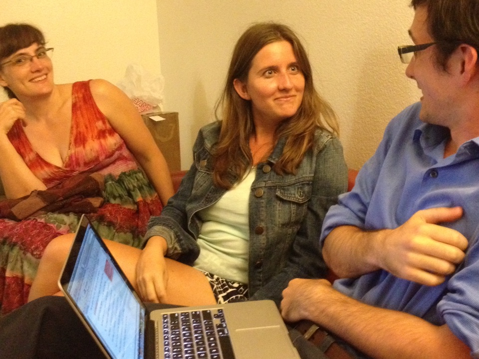 Caption: This is one of my favorite photos from Clarion 2013, my previous stint teaching the six-week workshop in San Diego. Patrick Ropp (right) clearly is not at all intimidated by Jessica Cluess (middle), while Marie Vibbert (left) hopes in vain that the instructor will intervene. I'm honored to be teaching Week Three of Clarion 2016 in San Diego, in a lineup that includes (in teaching order) Kelly Link, Ted Chiang, Victor LaValle and the team of Ellen Kushner and Delia Sherman -- plus, of course, the students.I look forward to meeting my new colleagues!