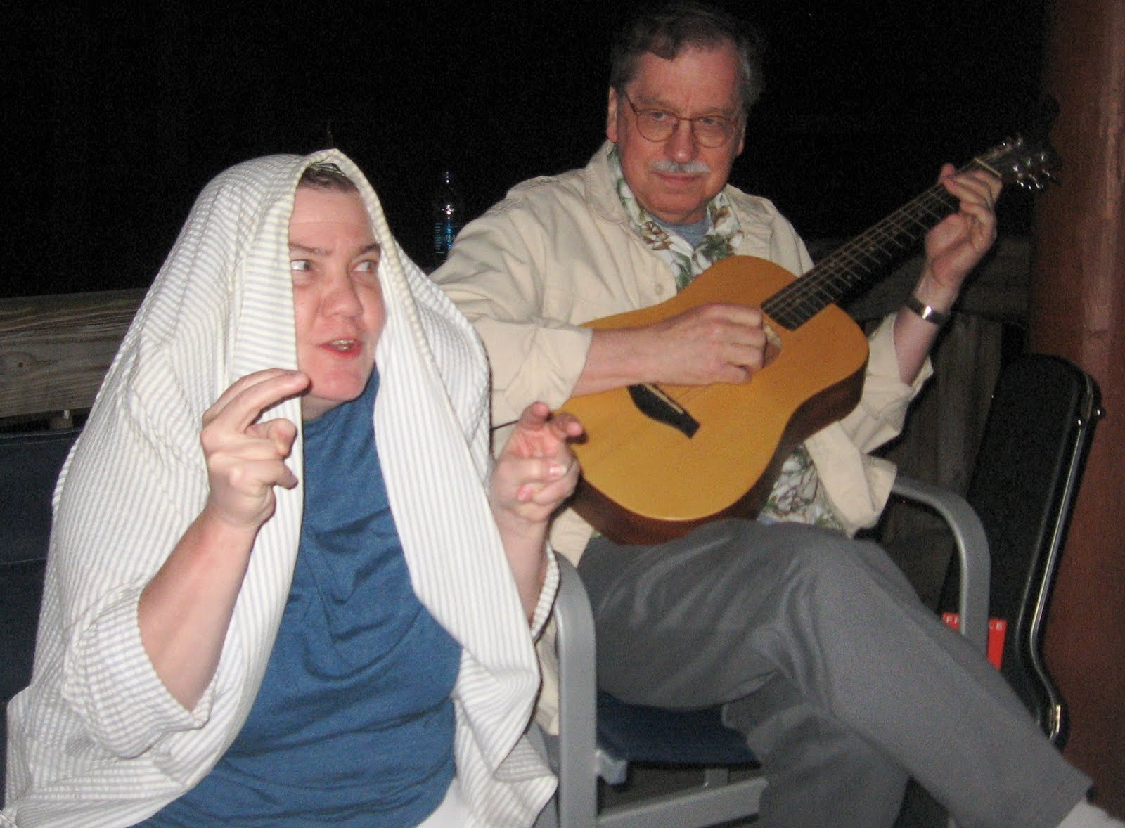 Below: Two views of Liza Trombi and James Patrick Kelly.