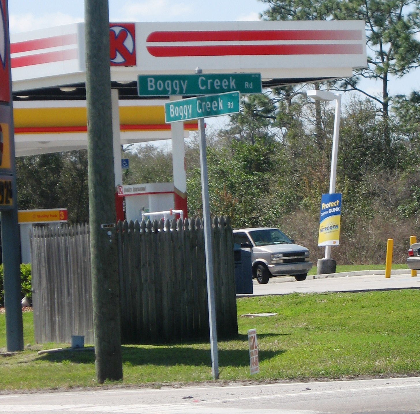 I wish I had taken some photos of East Lake Fish Camp, a bit of Old Florida where we relaxed and ate exactly the lunch we wanted (catfish and beer, in my case). I did, however, take a photo to prove exactly why straying off the "main roads" in the Orlando area can be so bewildering, at the intersection of Boggy Creek Road and Boggy Creek Road: