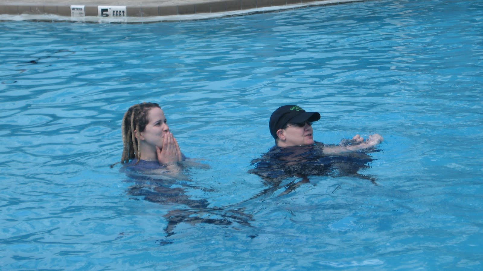 Below: Amelia Beamer and Ellen Klages in the swim.