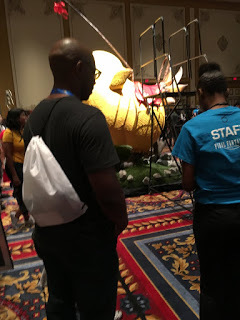 Okay, so I head back upstairs to rest. Damn it, as much as I want to be racing all over this hotel, I need a rest, so I hide out in the room while hubby goes on a treasure hunt! I text him, cuz I'm a little hungry too...and those fucking crepes are calling my name. I head back down to the convention hall and...