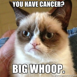 As funny as the picture above is, cancer is pretty serious. I don't really have even a definitive diagnosis yet since the surgeon is still reviewing my case. I've been told I need to get clearance for surgery, which I don't think will be a problem but it's looming in the future and everything is up in air.