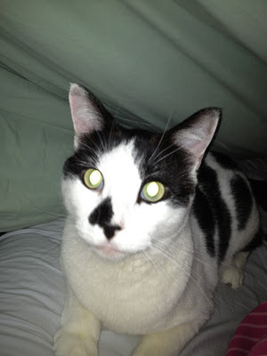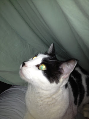 Well after chatting with Kele, I took the blanket off him but he didn't leave. And no, I didn't call him dumb. He's a lovely, sweet and precious cat.
