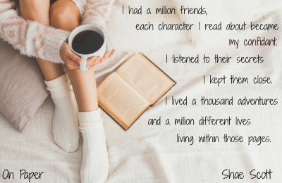 Growing up an only child, Shae Scott fell in love with words at an early age, learning the best friends in the world can be found among the pages of a book.
