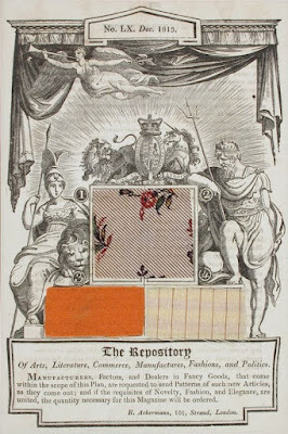 As I have in previous posts, I’ll be examining actual fabric samples glued intoseveral earlier editions of Ackermann’s Repository, samples supplied bythe manufacturers and published by Ackermann in order to boost the Britishcloth-making industry at a time when exporting British goods to Europe was almostimpossible because of the Napoleonic war. I'll give you a close-up scan of eachsample, the published description if available, and my own observations of the color,weight, condition, and similarity to present-day materials, to give you as closea picture as possible of what these fabrics are like.