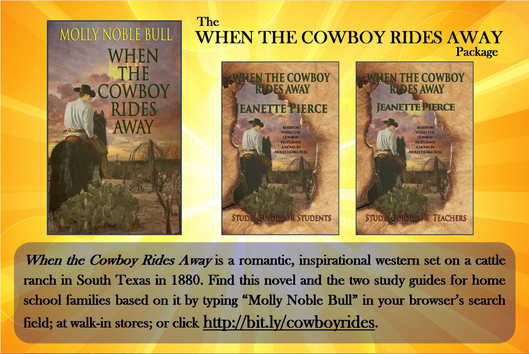 What makes When the Cowboy Rides Away different from most Christian westerns? Jeanette Pierce, a retired English teacher, wrote study guides for home school families based on When the Cowboy Rides Away —one for teachers and one for students.