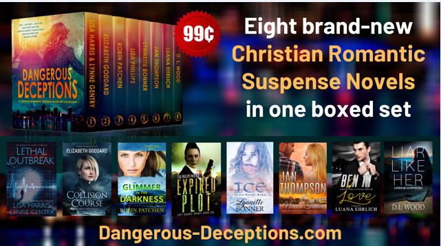Readers, here’s a link to the book.Dangerous Deceptions: A Christian Romantic Suspense Boxed Set Collection[image error]