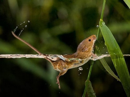 Holding on for what seems like dear life this tiny harvest mouse, although only a few feet off the ground, is grasps by his tail and supported by his comrades until they can’t hang on any longer. Photos taken by Jean-Louis Klein & Marie-Luce Hubert.