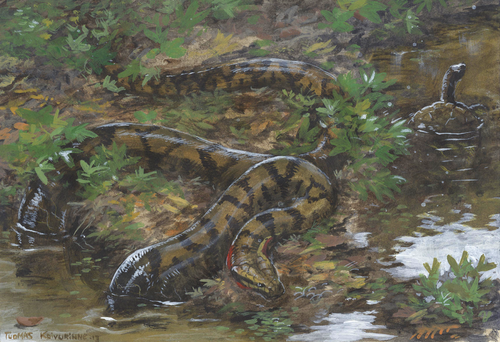 Titanoboa life-size model at Smithsonian Institute, Illustration by Tuomas Koivurinne: