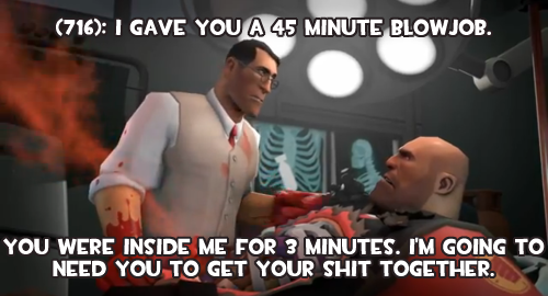 (716):I gave you a 45 minute blowjob. You were inside me for 3 minutes. I’m going to need you to get your shit together.