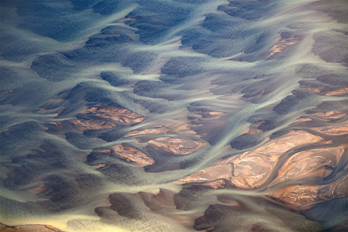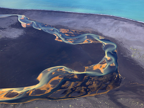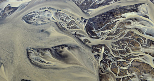 At first glance these photos by Andre Ermolaev look like twisting abstract paintings, but in reality are aerial photos of rivers flowing through Iceland’s endless beds of volcanic ash. Given its name and stereotypical depiction it’s somewhat surprising to learn that the small country named after ice is home to no less than 30 active volcanic systems.