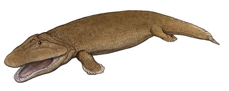 Tiktaalik provides insights on the features of the extinct closest relatives of the tetrapods. Unlike many previous, more fishlike transitional fossils, the “fins” of Tiktaalik have basic wrist bones and simple rays reminiscent of fingers. The homology of distal elements is uncertain; there have been suggestions that they are homologous to digits, although this is incompatible with the digital arch developmental model because digits are supposed to be postaxial structures, and only three of the (reconstructed) eight rays of Tiktaalik are post-axial. However, the proximal series can be directly compared to the ulnare and intermedium of tetrapods. The fin was clearly weight bearing, being attached to a massive shoulder with expanded scapular and coracoid elements and attached to the body armor, large muscular scars on the ventral surface of the humerus, and highly mobile distal joints. The bones of the fore fins show large muscle facets, suggesting that the fin was both muscular and had the ability to flex like a wrist joint. These wrist-like features would have helped anchor the creature to the bottom in fast moving current.Tiktaalik generally had the characteristics of a lobe-finned fish, but with front fins featuring arm-like skeletal structures more akin to a crocodile, including a shoulder, elbow, and wrist. The fossil discovered in 2004 did not include the rear fins and tail. It had rows of sharp teeth of a predator fish, and its neck could move independently of its body, which is not possible in other fish. The animal had a flat skull resembling a crocodile’s; eyes on top of its head, suggesting that it spent a lot of time looking up; a neck and ribs similar to those of tetrapods, with the ribs being used to support its body and aid in breathing via lungs; well developed jaws suitable for catching prey; and a small gill slit called a spiracle that, in more derived animals, became an ear.