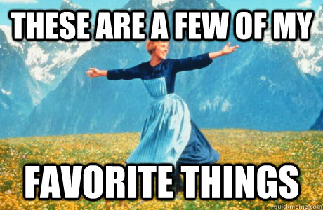 Continuing the week’s theme of Listy Things, I’ve pulled from what the other gals have covered and picked my favorites. Fair warning: I learned through this exercise that I can’t answer even the simplest question simply. It usually involves a small doctoral thesis.