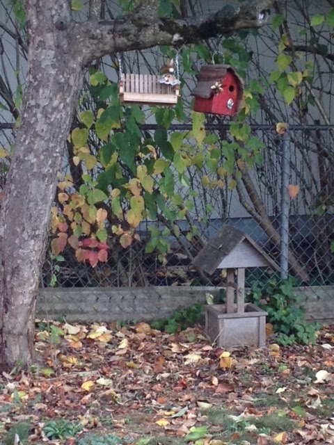 by Margie Senechal This is my view this morning out my writing window. I moved the bird feeder and house into that tree for that specific reason. Sometimes I just aimlessly stare out the window at them. And at my wishing wells. I have three of them in my yard. They're pretty tattered at this point, but they inspire me to dream. As does this view.