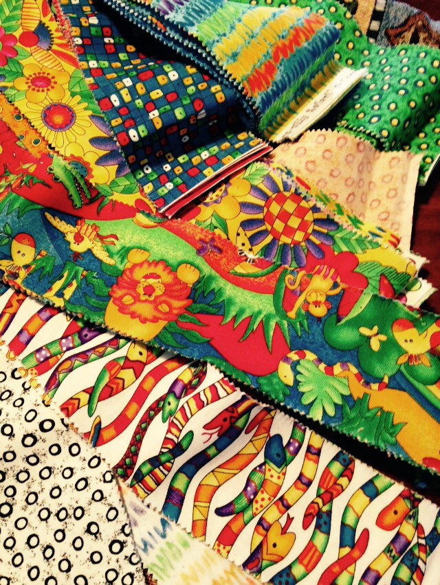 the unsewn jelly roll - great colors! We have a lot of rainy, gloomy days here in the fall. Days that I love because there is nothing better than curling up with a good book and a warm blankie. A couple of weeks ago we had a day like that, but I didn't read - I sewed. Early this summer bebe and I started a new quilt project. When she was little I saw this cute jelly roll with animals and fun, bright, funky prints. It hit my fabric stash but I didn't do anything with it. The kiddo was loo...