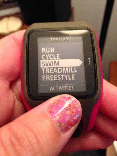 First, my new TomTom - it's the MultiSport, and it's a fitness watch. It tracks my distance running, cycling, swimming...monitors my heart rate, gives me a calorie count and feeds right in to the My...