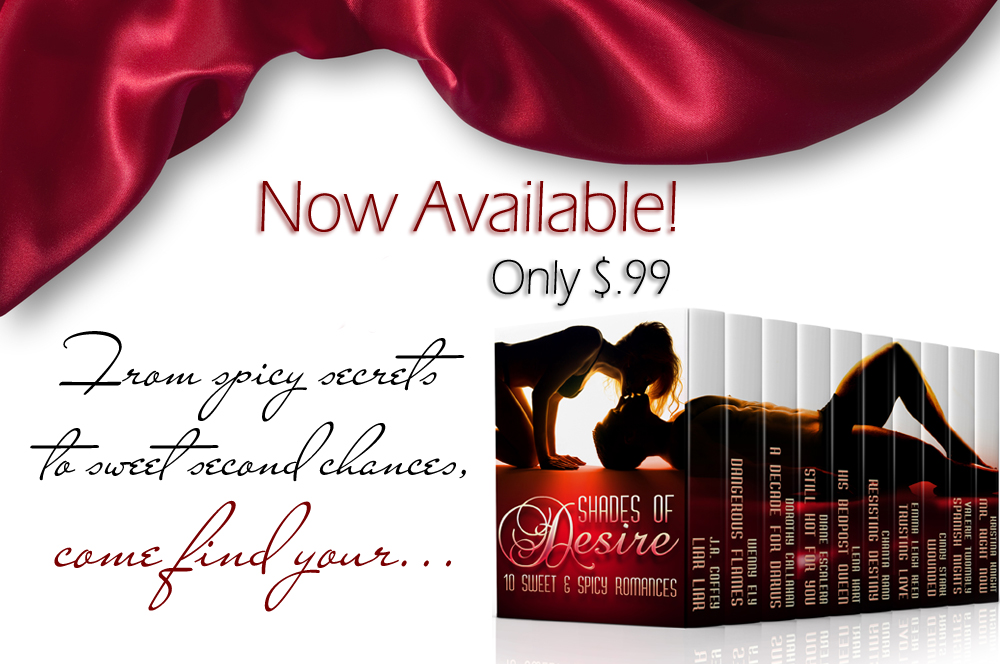 The Shades of Desire (featuring my book, Mr. Right Now) released this week. 10 stories, all heat levels, but love and romance center each one. ~ Kristina