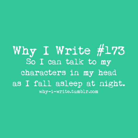 I love it when my characters talk to me at night--especially if I'm still conscious and can take notes. Last night, I came up with a new possible title for Bix, if I decide to go MG with the book and character. What do you think of: Bix, Paintball Assassin?I also love it when I dream about them. That doesn't happen as often, but when it does it makes me wake up in a good mood.