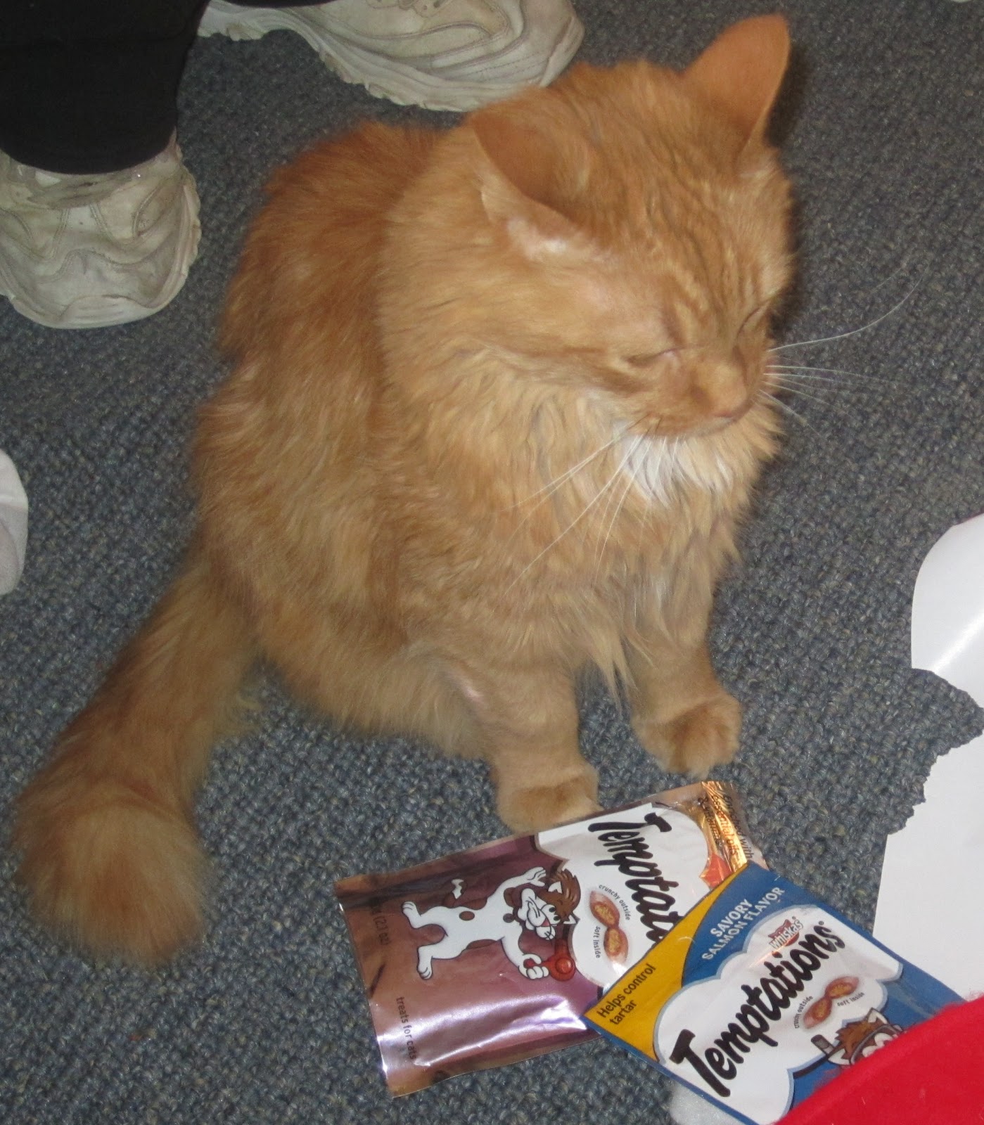 Tangerine Baker Dunham Ten years ago, in August, I walked out of City Market and leaned over a cardboard box. Inside were three little kittens. A pair of gray longhairs, and scruffy ball of orange fur.The gray kittens were beautiful, but there was something special about the orange boy. He had so much trust in his steady golden gaze, even though his tail was broken, probably by the kids who had handled him too roughly.
