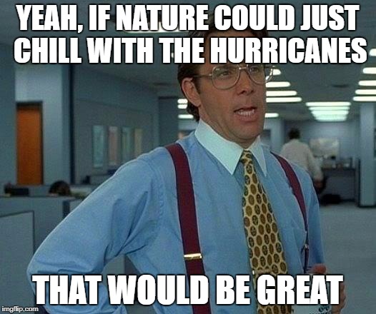 Today is a random post, mostly because I'm running late in writing it and because I don't have anything in particular to talk about. First thing: prayers to all those suffering from or still in the path of any of the horrible weather, storms, fires, etc. raging through the country. It's no laughing matter, certainly, especially for those who have lost friends and family members, but Mother Nature certainly has a way of reminding us just how small and mortal we are.