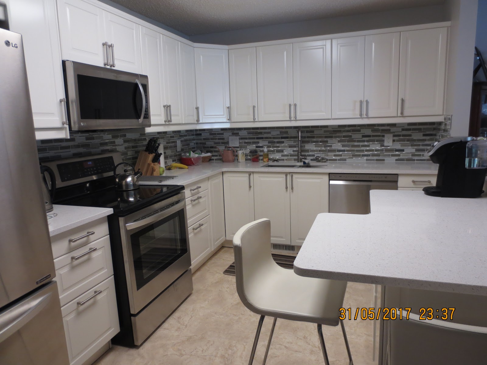 After what seems like months (because it was - mid-March to the end of May) my kitchen reno is finally complete. Halleluiah! No more workmen traipsing in and out of my house, and no more waiting for workmen who don’t show up when they said they would. The painters were the last piece of the puzzle and they did a decent job, but they were messy. I spent a lot of time picking spots of paint off my floors and furniture. Not impressed.But it’s done. This has been the most extensive reno my husban...