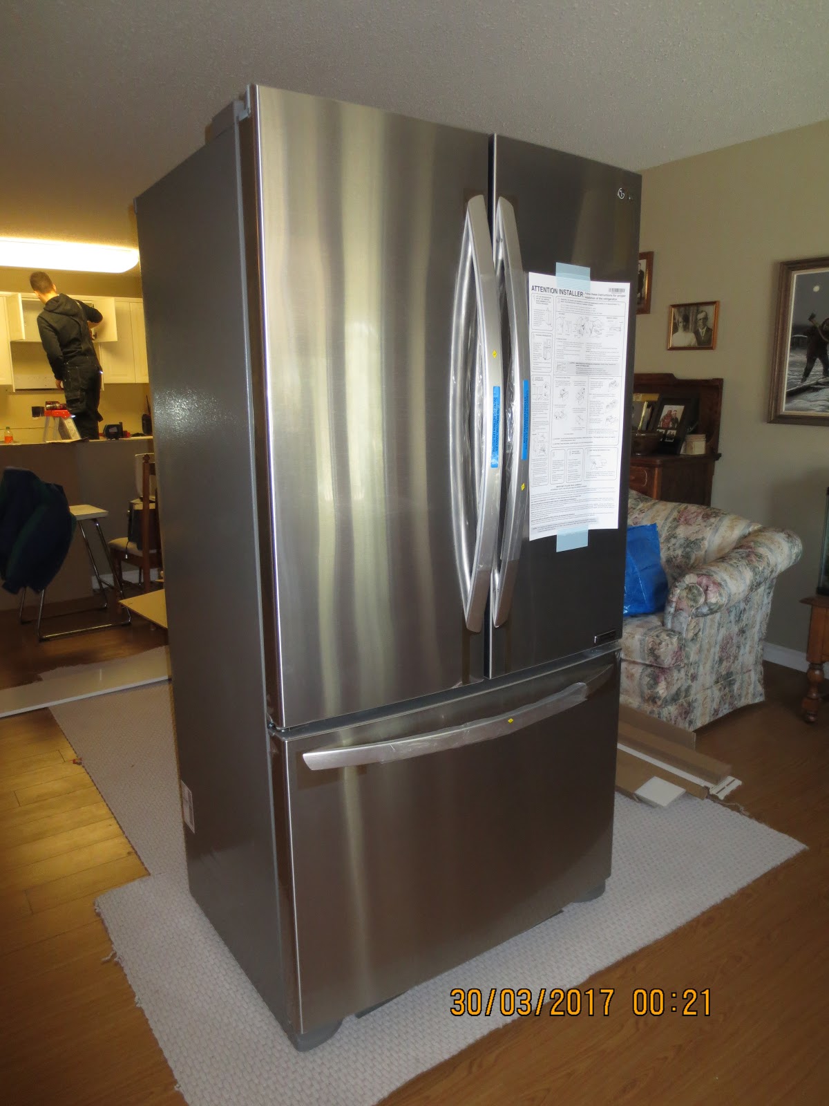 New appliances came today! Too bad they're in the living room right now.The cabinets are the fast...