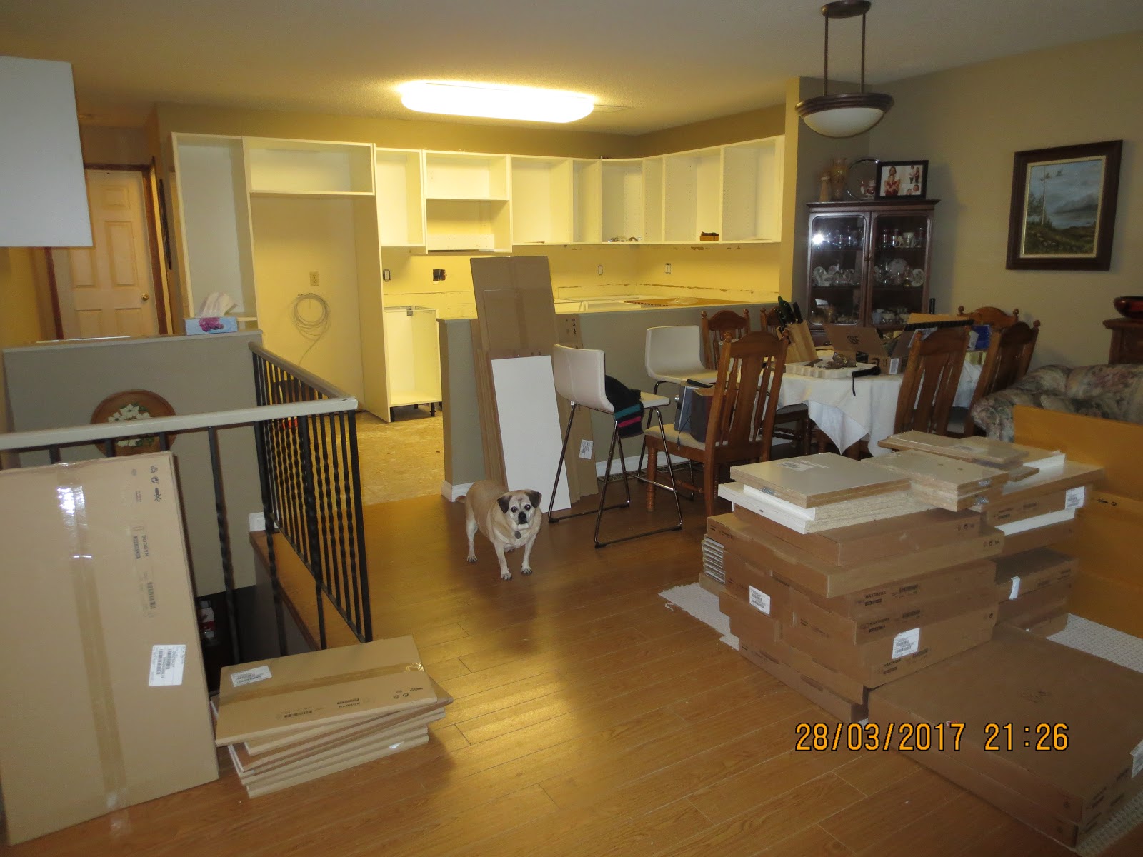 My dog Lou is confused by all the commotion, not to mention the boxes!