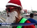 Agente vestido de Papa Noël en Brasil dirige el tráfico bailando.