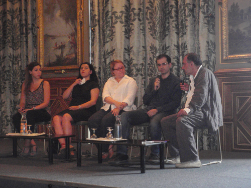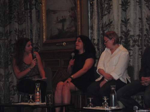 A mi izquierda el caricaturista iraní recién exiliado Mana Neyestani, con el traductor