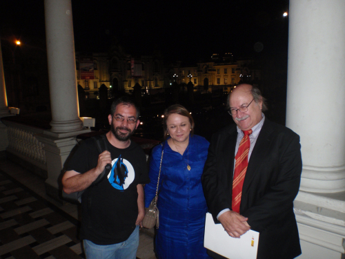 Con los escritores Antonio Skármeta (a mi izquierda) y Enrique Planas