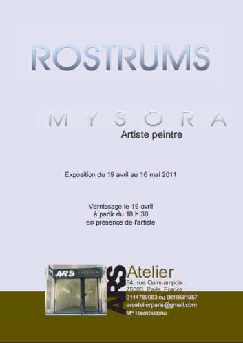 Un recordatorio sobre la Exposición Rostrums de Mysora en Ars Atelier, vernissage el próximo 19 de abril, a partir de las 18 y 30 h.