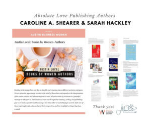 Are you looking to support women writers based in Austin? Be sure to catch Austin Business Woman for a feature on local Austin authors, including our own Caroline A. Shearer and Sarah Hackley! Featuring books like Dead End Date, the Raise Your Vibration series, Women Will Save the World, Finding Happiness with Migraines, and Preparing to Fly, this article is worth the read!