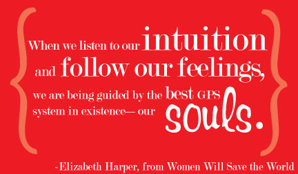 "When we listen to our intuition and follow our feelings, we are being guided by the best GPS system in existence-- our souls." -- Elizabeth Harper, Women Will Save the World