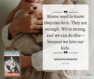 When asked about the purpose behind Mom Life, Ethington said, “I wanted the mother who felt isolated and alone and like she wasn’t measuring up to know that she, too, was meant to be a mother. And that she is, in fact, the best mother for her own kids. Moms need to know they can do it. They are enough. We’re strong, and we can do this—because we love our kids.”